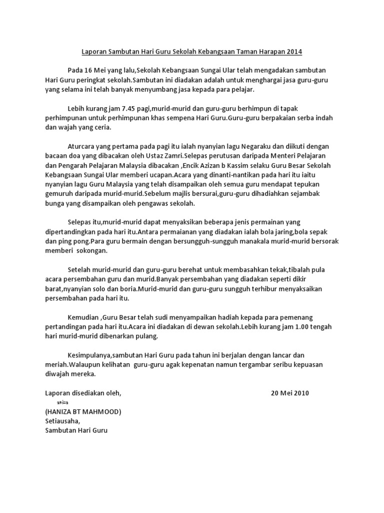 Tulis catatan harian tentang sambutan Hari Guru yang diadakan di sekolah kamu. Oleh itu pihak kementerian pelajaran malaysia telah menetapkan 16 mei sebagai hari guru dan mengadakan sambutan hari guru di setiap sekolah. Abstract Of 2nd International Education Postgraduate Seminar Ieps Bagi tahun 2021 dan atas faktor perintah kawalan pergerakan bersyarat pkpb sambutan hari guru akan menjurus kepada program yang diadakan.