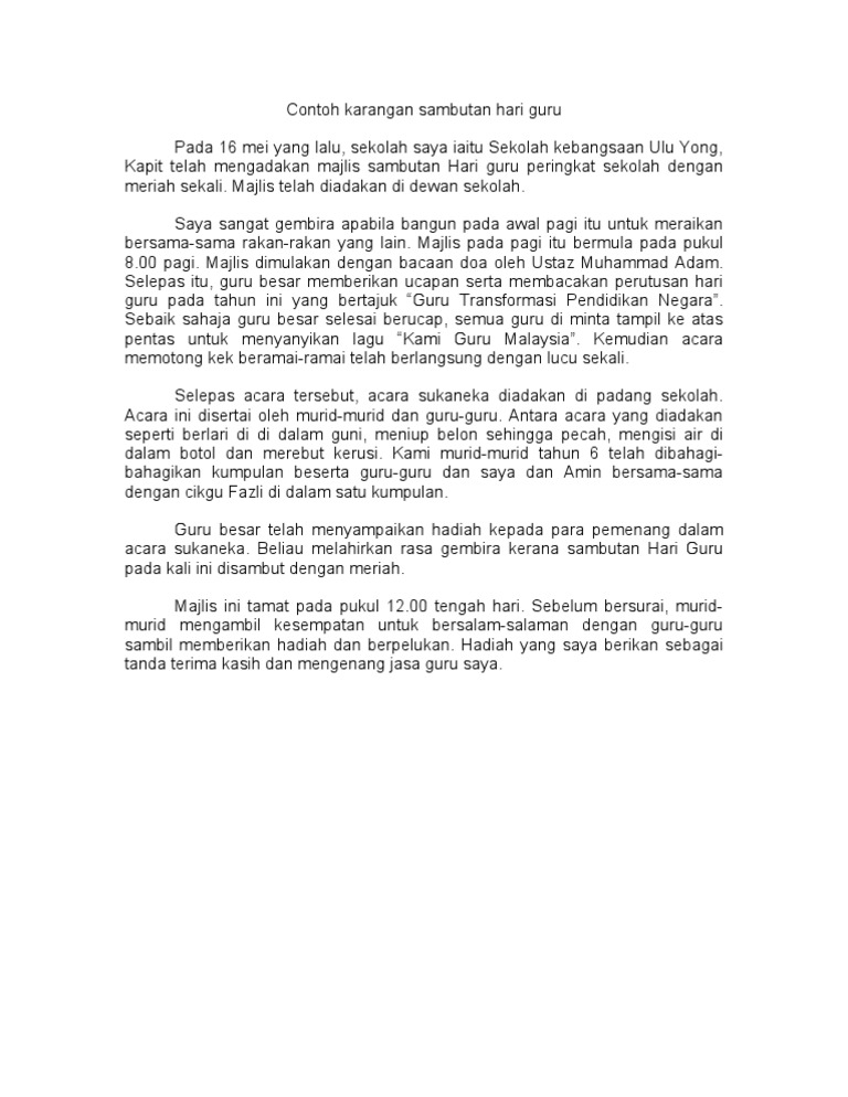 Contoh Karangan Sambutan Hari Guru Pdf
